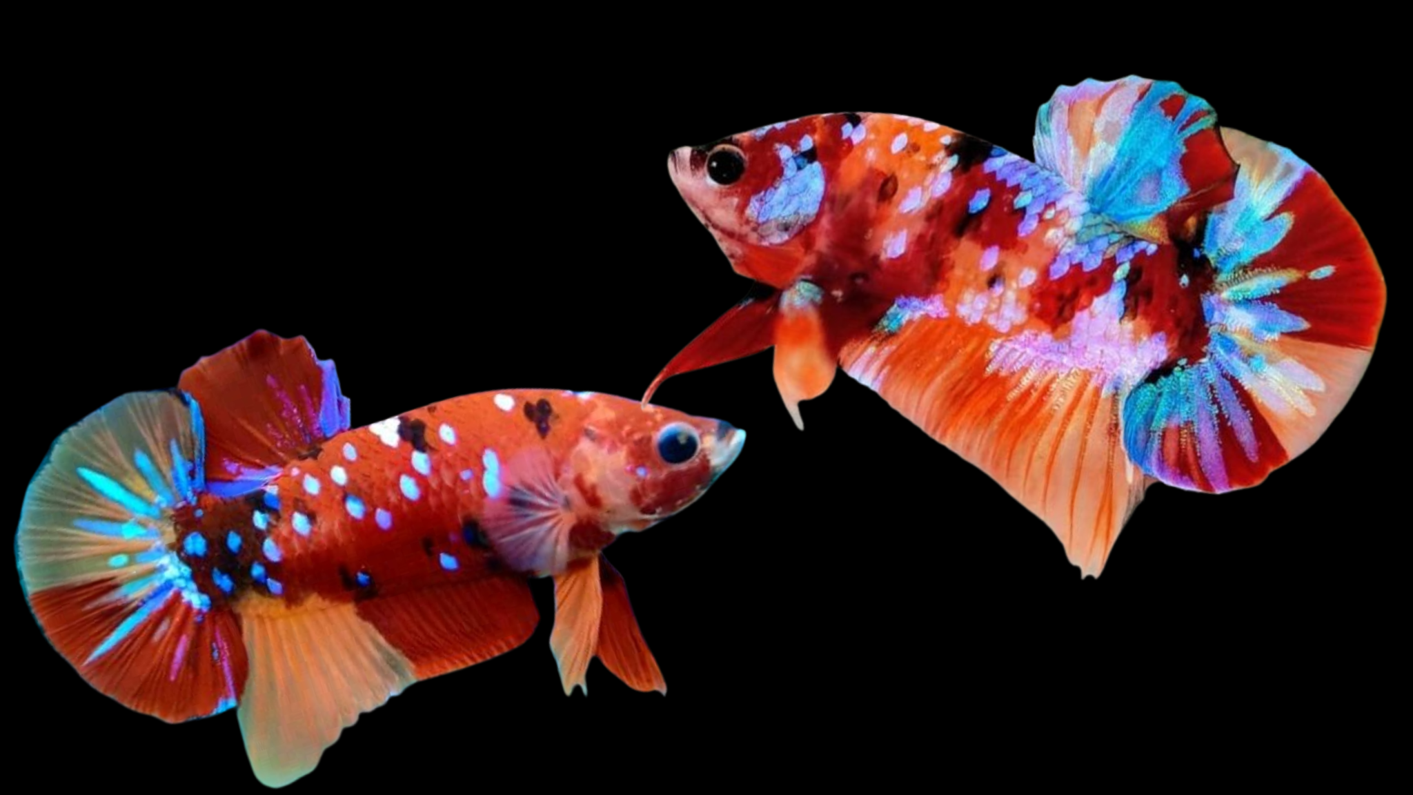- Nemo Koi Halfmoon – Đuôi xòe rộng 180°, hoa văn koi trải đều