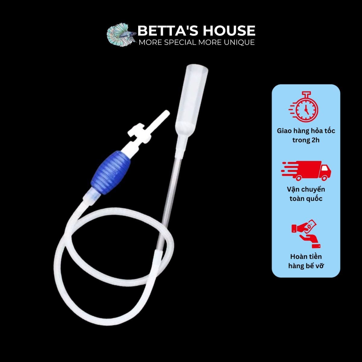 Ống bơm tay có van khóa giúp thay nước và hút cặn dành cho hồ cá dài 2 mét và nhỏ hơn 1000L, giúp cá khỏe mạnh và phát triển.