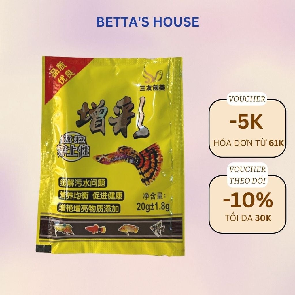 Thức ăn cho cá 7 màu Guppy - Thức ăn dinh dưỡng cho cá cảnh gói 20g